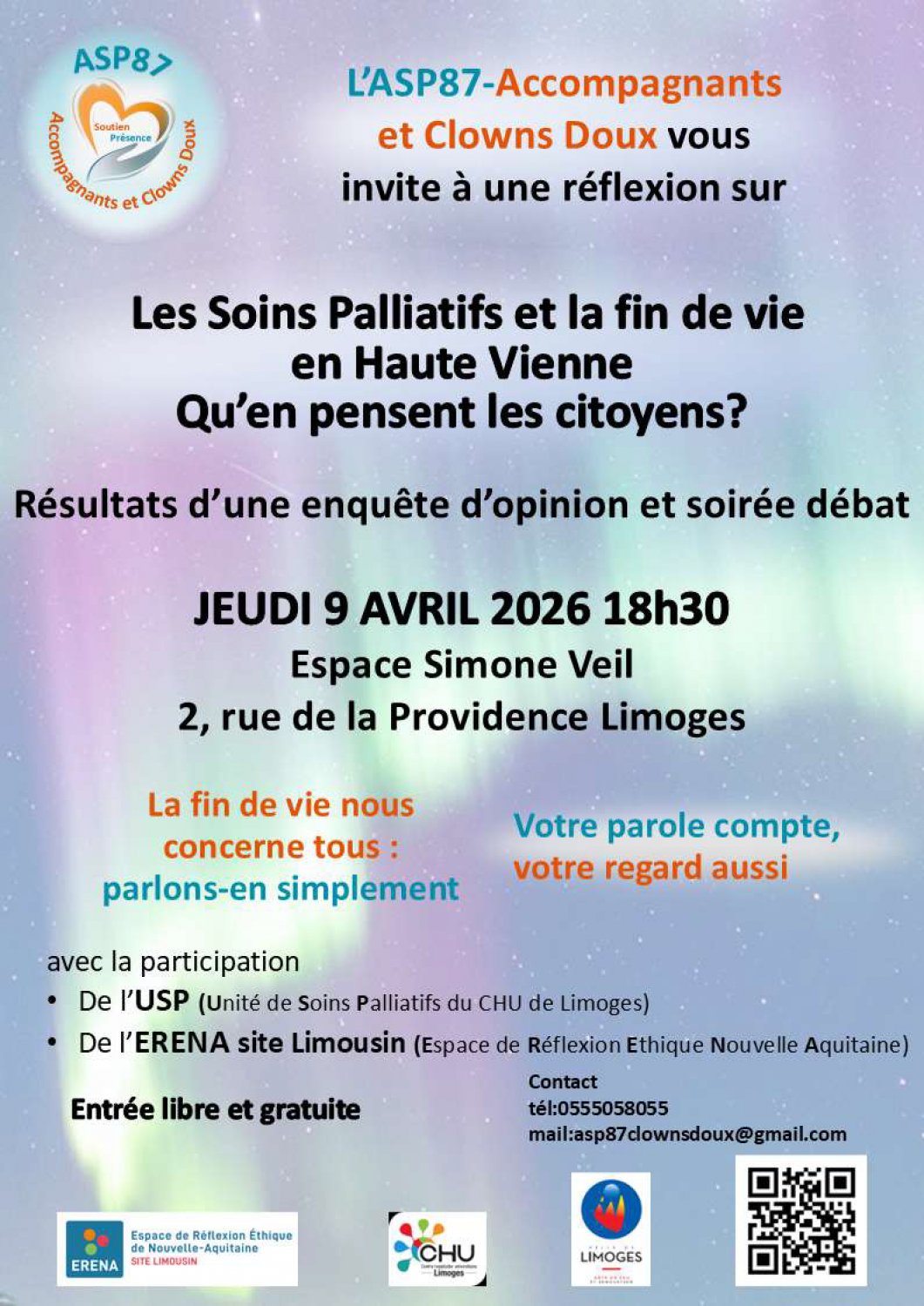 Évènement organisé par l'ASP87-Clown doux avec la participation de l'ERENA site Limousin et l'Unité de Soins Palliatifs (USP) du CHU de Limoges