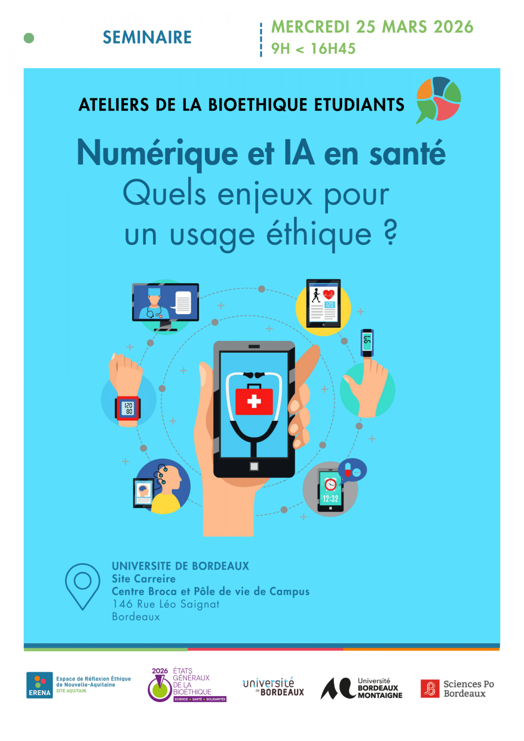 Les Ateliers de la Bioéthique étudiants sont nés d’un partenariat entre l’Espace de Réflexion Ethique de Nouvelle Aquitaine - ERENA site Aquitain, l’Université de Bordeaux, l’Université Bordeaux Montaigne et Sciences Po Bordeaux (en savoir +).